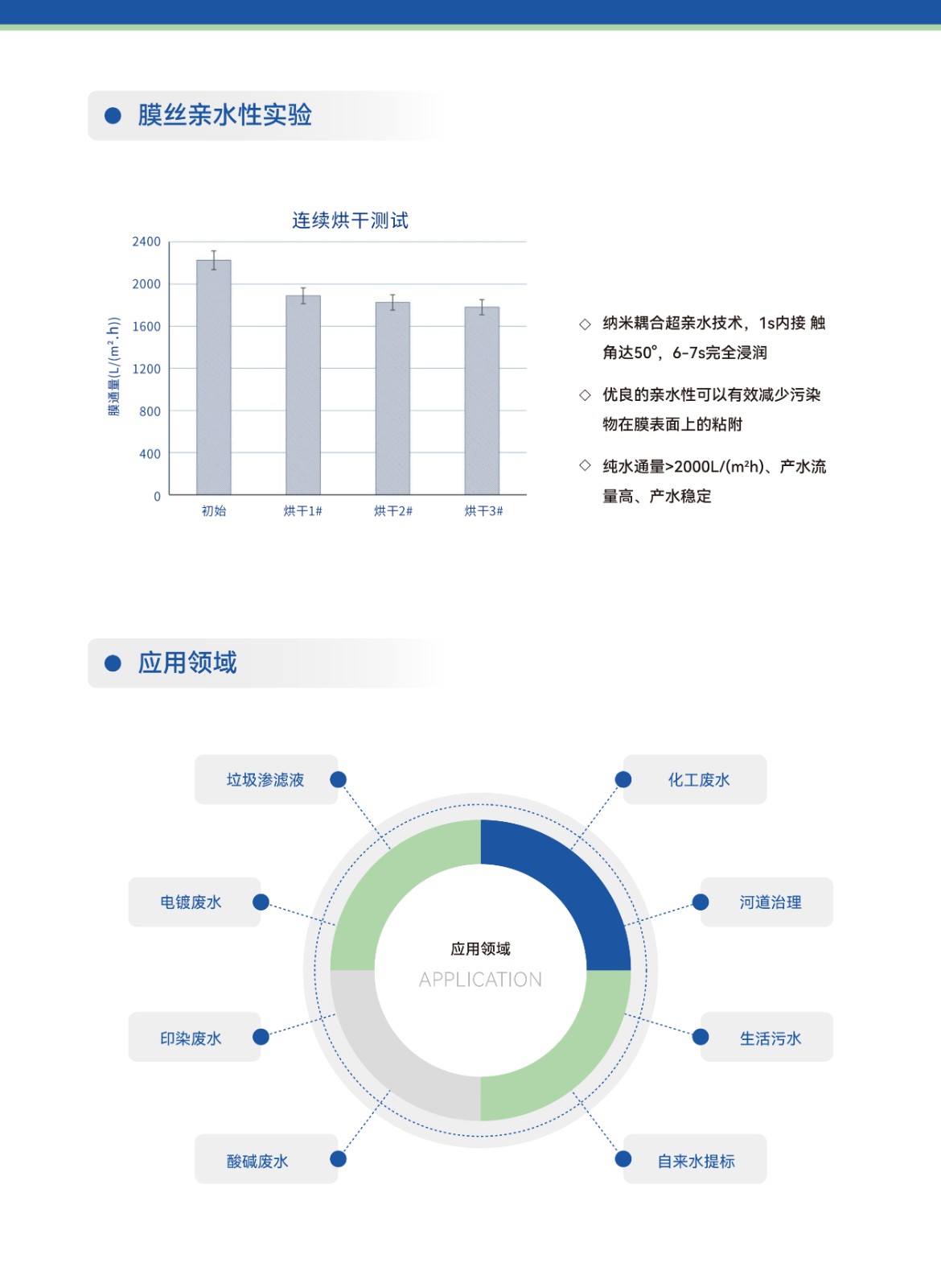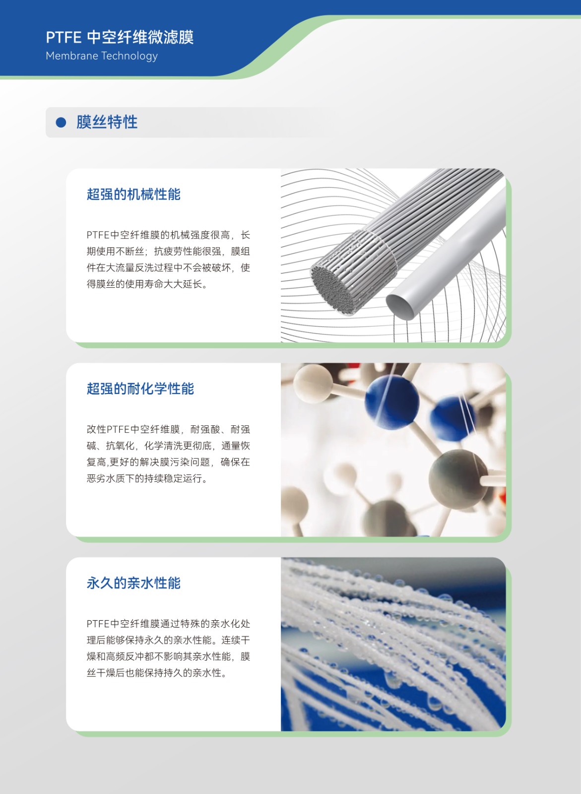 工作原理:PTFE中空纖維簾式膜過濾是一個壓力驅動的膜分離過程,產水方式為負壓抽吸或重力靜壓出水。應用領域:1、大型市政生活污水深度處理;2、垃圾滲濾液。